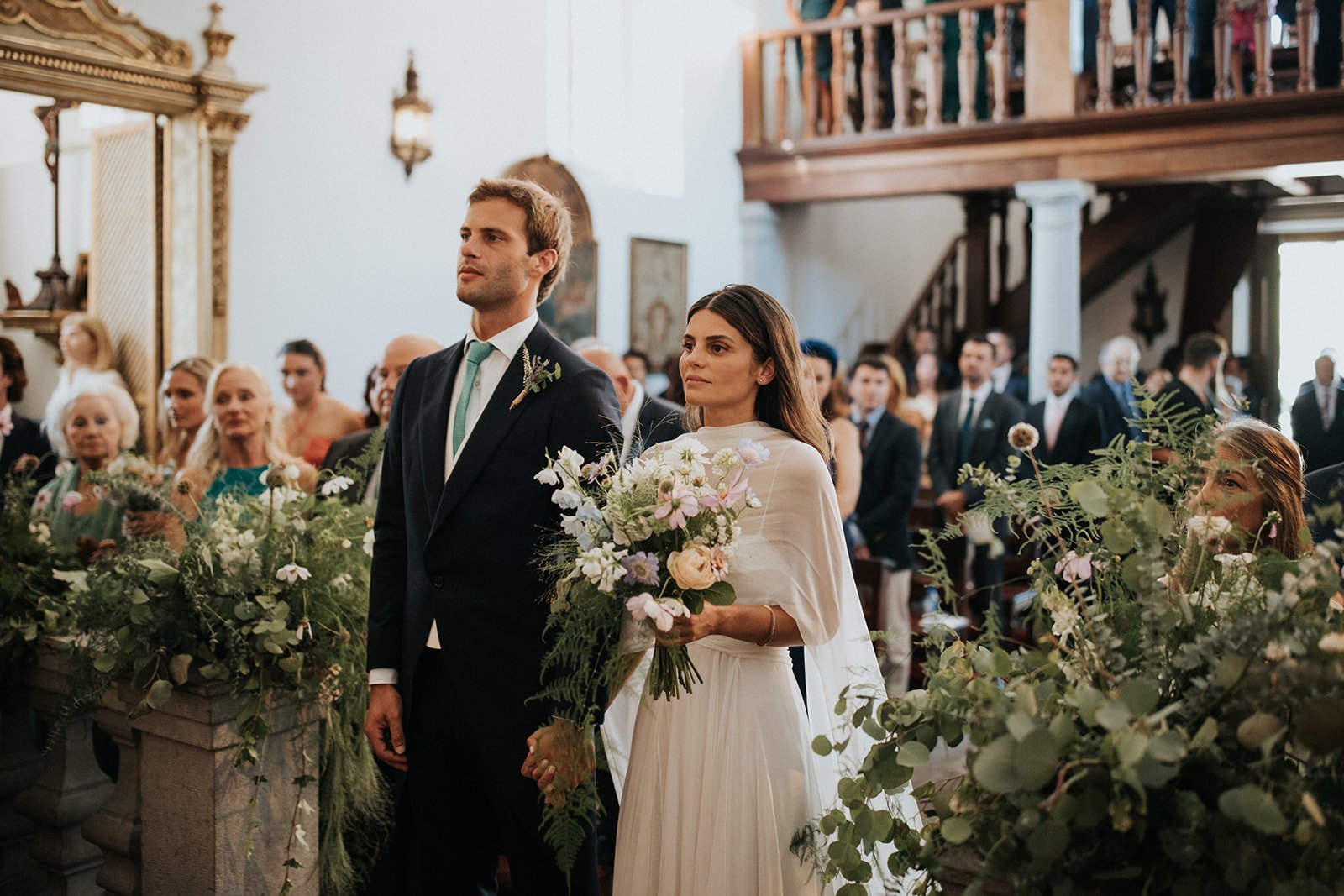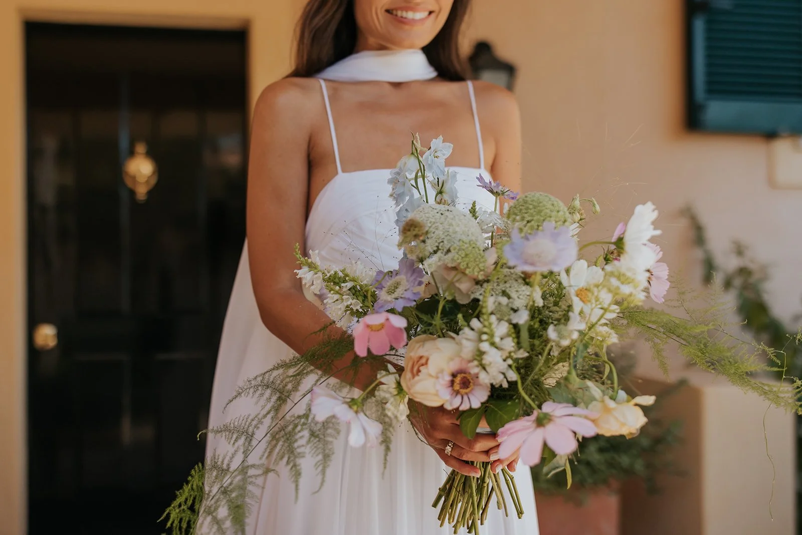 A bride crafted her dream wedding ceremony and accessories by blending vibrant sunset colors with lush greenery. The design drew inspiration from the natural beauty of Portugal, combining the amber and peach hues of the Cascais coastline with the deep greens of the Sintra mountains. This vision emphasized sustainability, utilizing only local, organically farmed flowers and greenery sourced from regional suppliers to bring a distinctly Portuguese, nature-inspired aesthetic to the day.